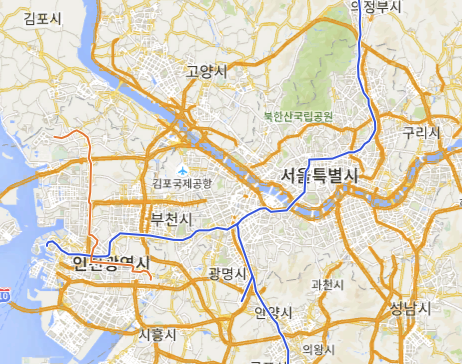 위와 같이 1호선과 인천 2호선이 그려져있다. 다른 노선들이나, 역, 마커같은 것은 없다는 점에서 보아, 시범적으로 테스트를 하려고 한 것 같다.