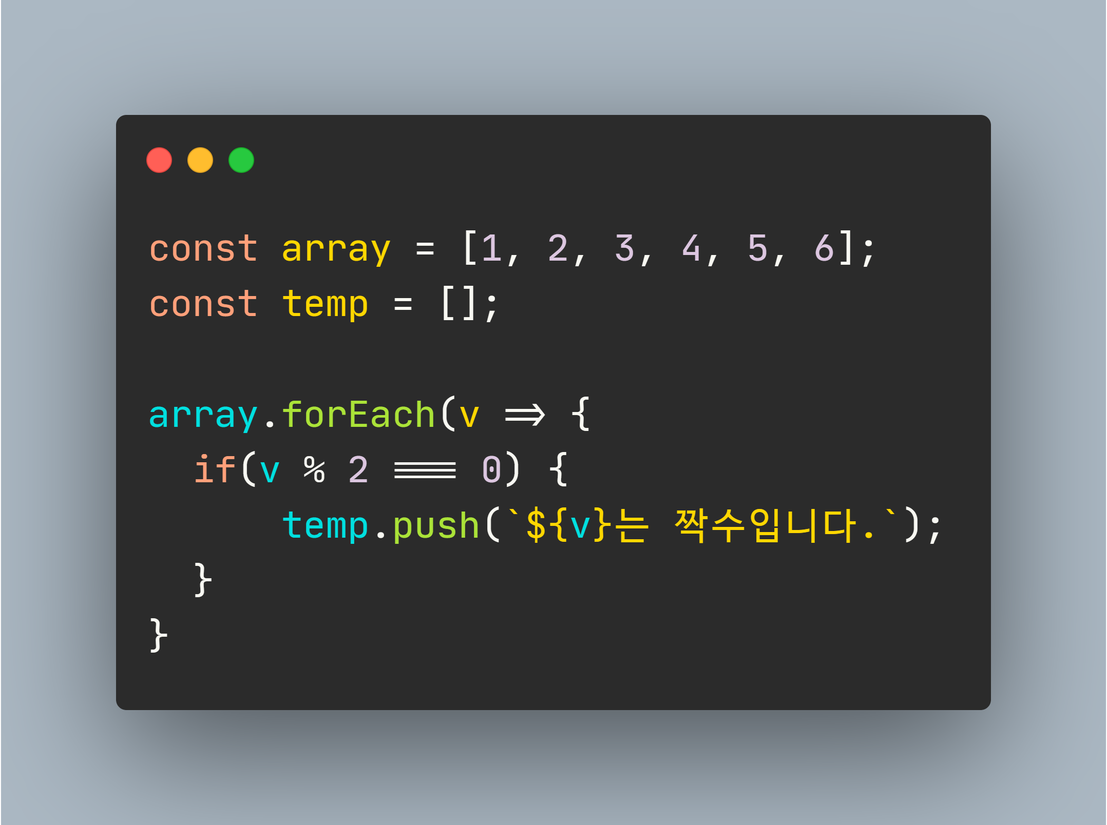 위 와 같은 코드에서는 아래와 같이 forEach 대신 filter를 사용하는 것이 더 좋다.