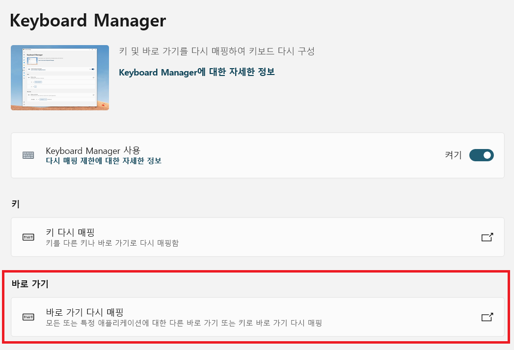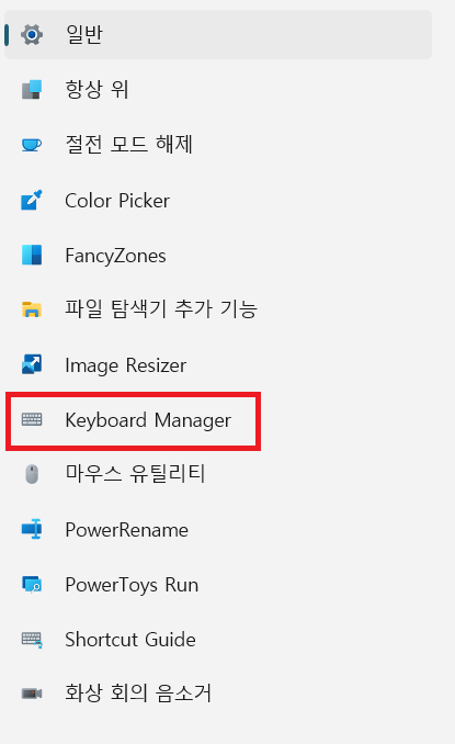 키보드 매니저(Keyboard Manager) 메뉴를 선택합니다.