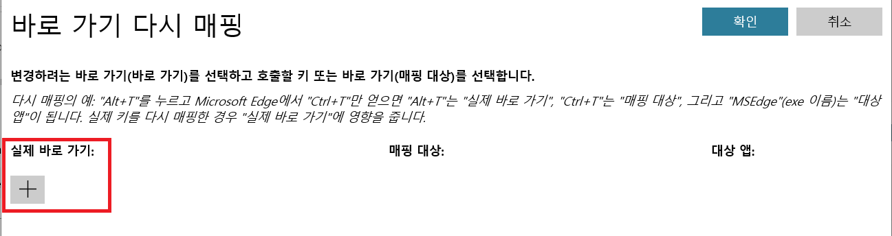 바로 가기 다시 매핑을 누릅니다.