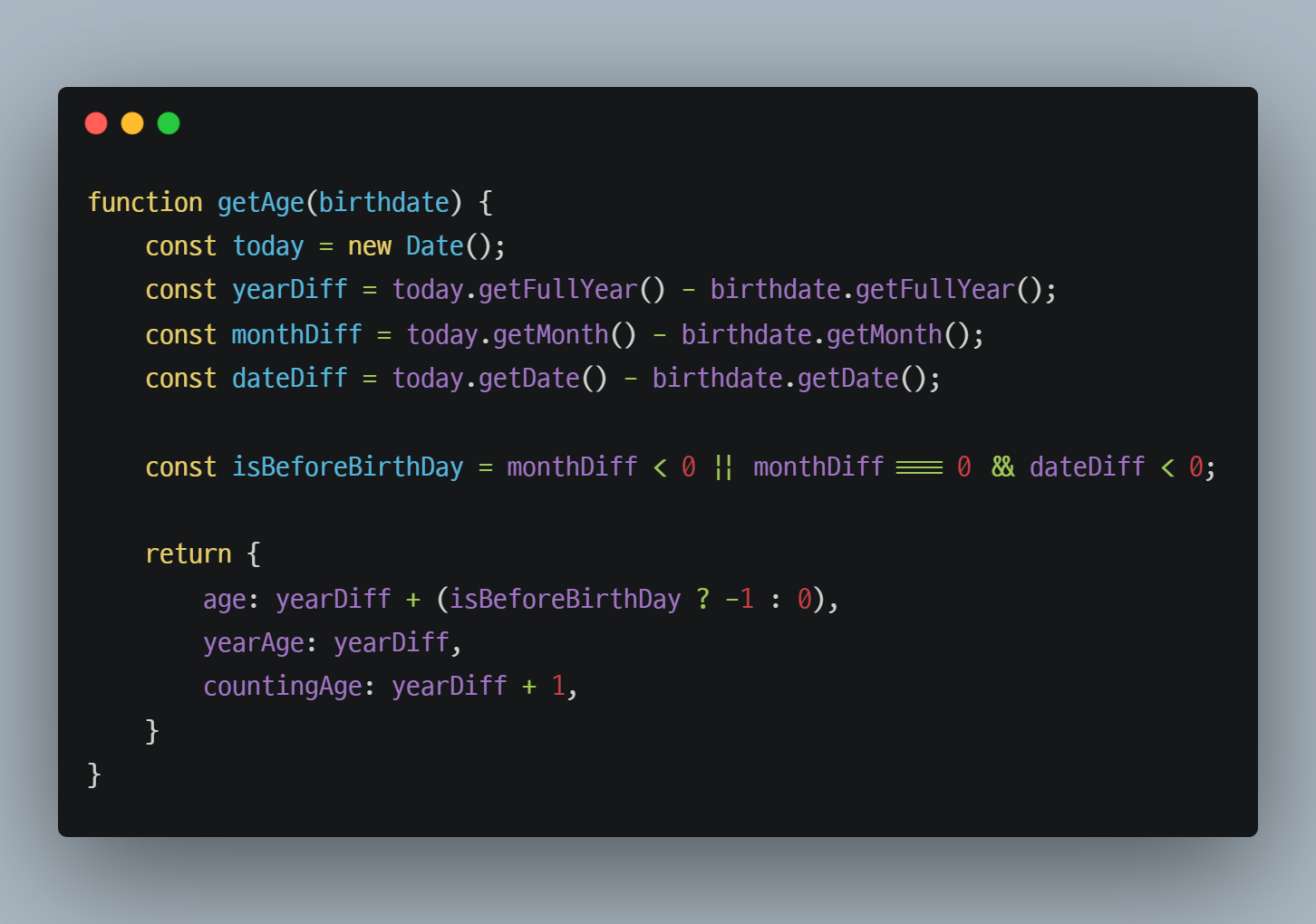 age: yearDiff + (isBeforeBirthDay ? -1 : 0),